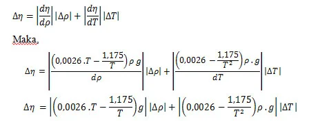 Dalam kasus khusus untuk percobaan viskositas dengan menggunakan alat viskositas Redwood’s maka Nilai viskositas sampel dapat dihitung dengan mengkonversi nilai Redwoo’s sec. dengan menggunakan JIS K2283. Terdapat perbedaan perhitungan teoritis antara Redwoo’s sec, Saybolt sec, viskositas Engler, dan viskositas absolut. Persamaan berikut diberikan oleh N.P.L. (National Physical Laboratory) Inggris yang mengungkapkan hubungan antara viskositas Redwoo’s dengan viskositas absolut:
